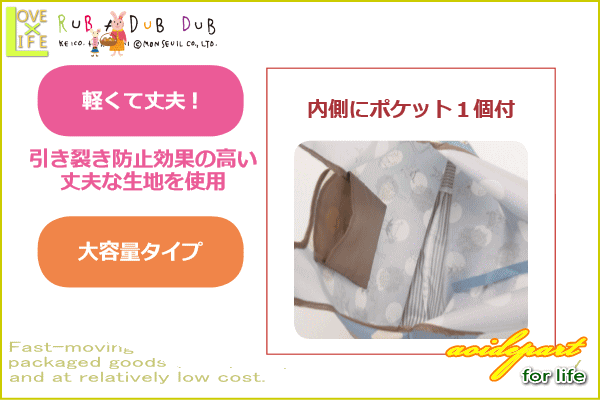 【RUB A DUB DUB】【ラブアダブダブ】ポケット付エコバッグ DX【ブルー】【エコバッグ】【バッグ】【ファンシー】【生活】【かばん】【ママ】【お母さん】【グッズ】【かわいい】